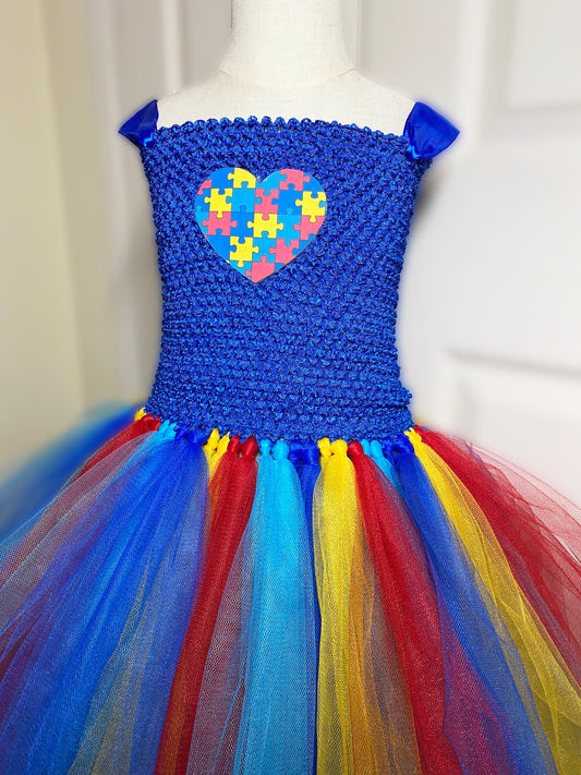 Autism Awareness Puzzle Piece Heart Tutu Dress with Cotton Lined Top