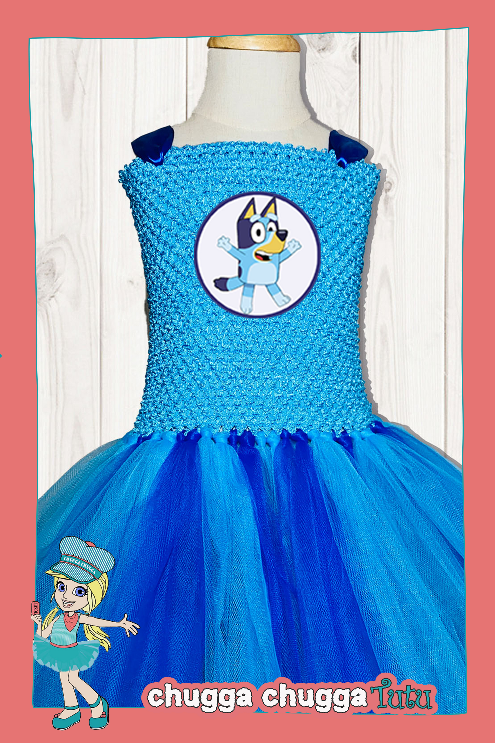 Bluey Tutu Party Dress with Turquoise Cotton Lined Stretchy Top Free 1st Class Shipping
