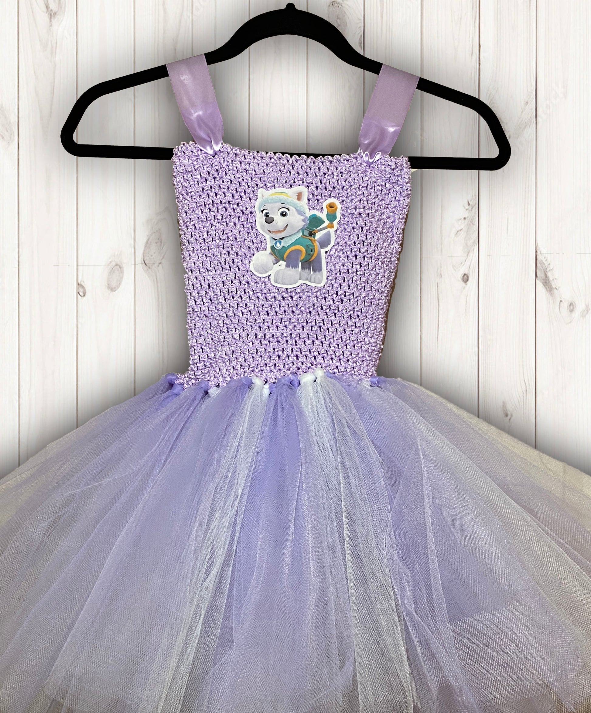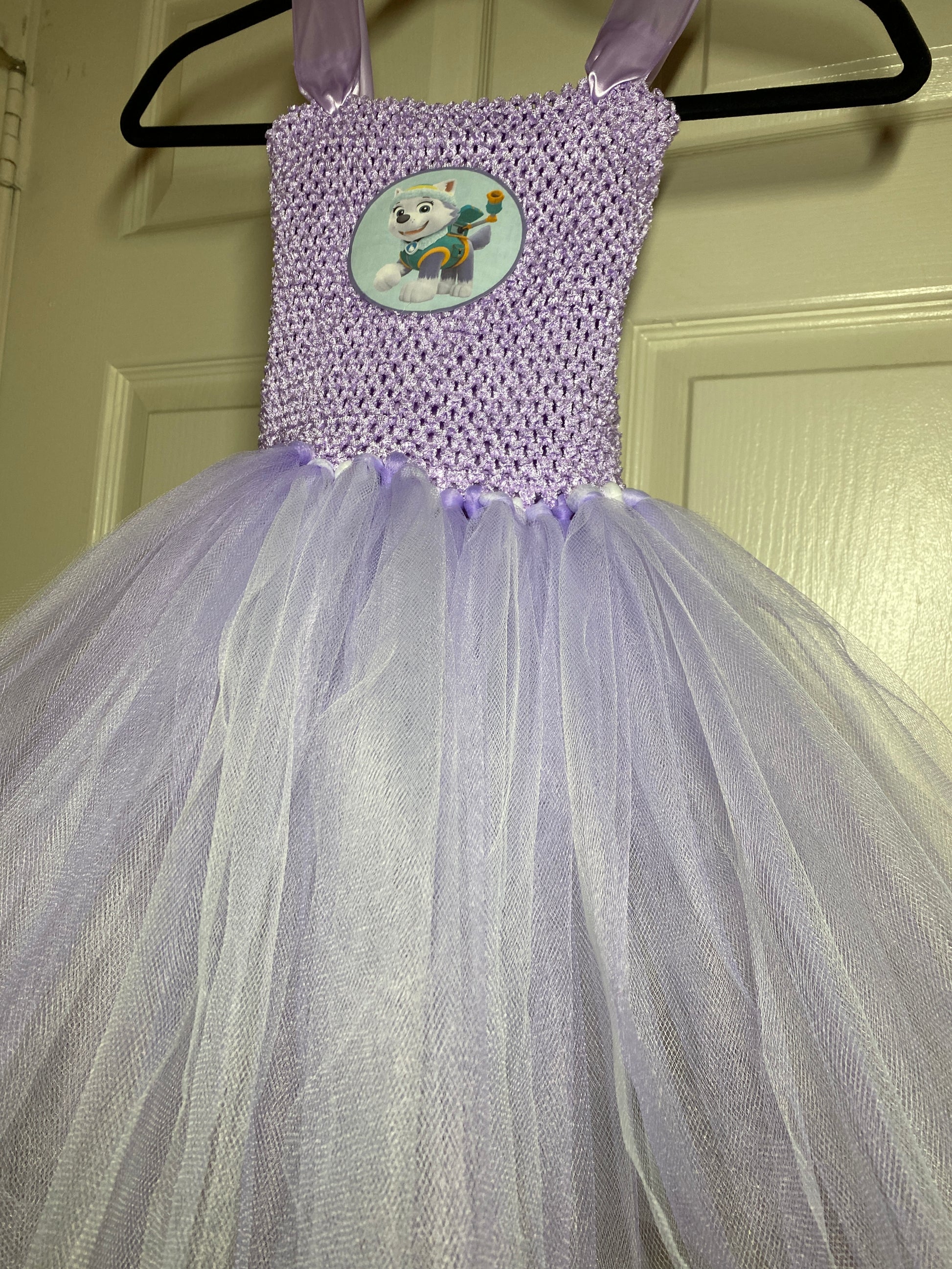 A bright and fun tutu made with fluffy tulle fabric. This amazing tutu party dress is a soft lavender and white tulle for the skirt and lavender for the cotton lined stretchy top.