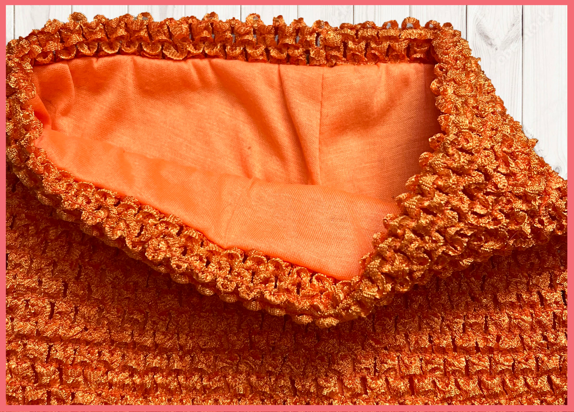 - orange top lined with a soft cotton and has a slight stretch, ready to fit many sizes
