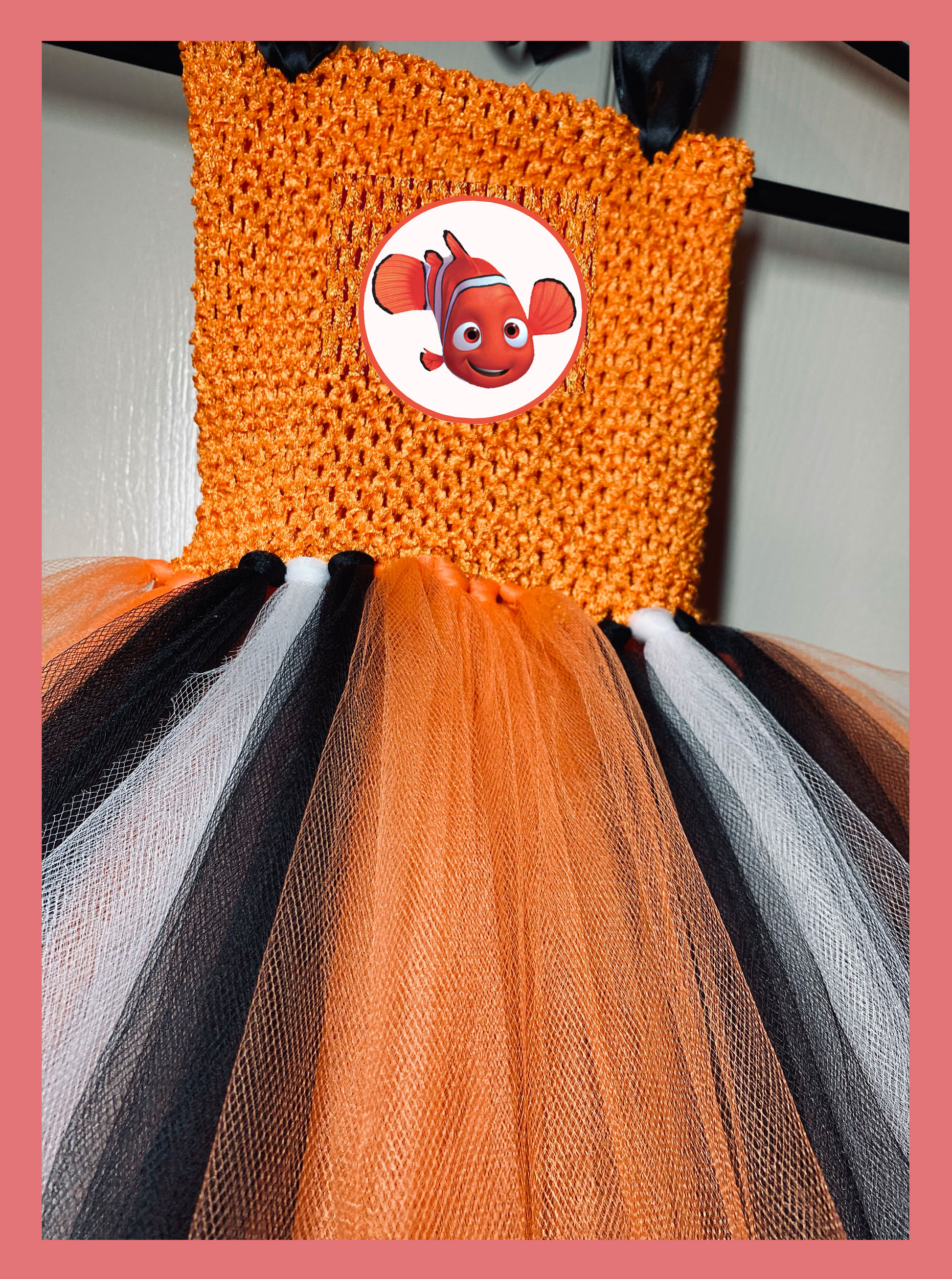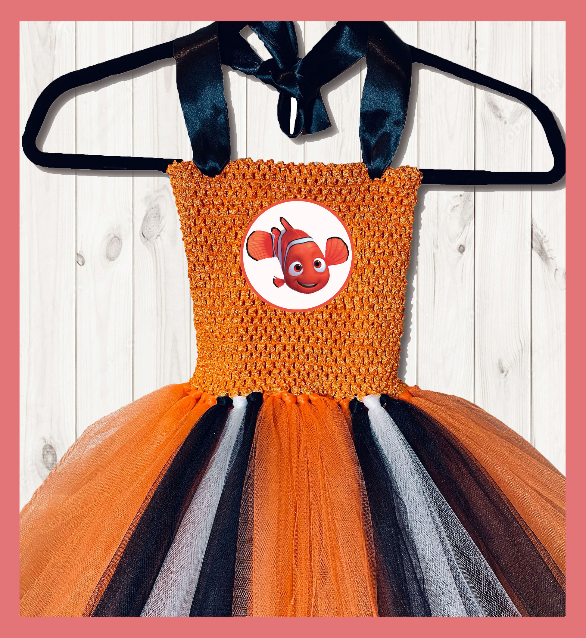 Nemo Halloween Costume Tutu Party Dress w/ Cotton Lined Orange Top