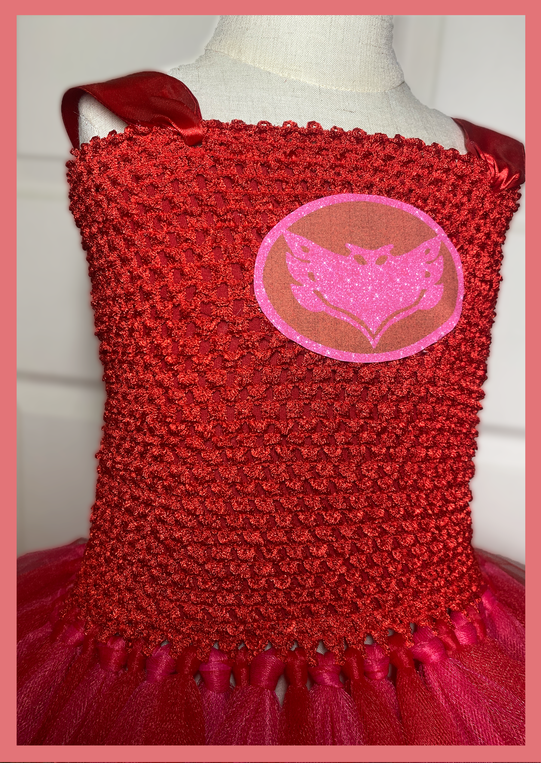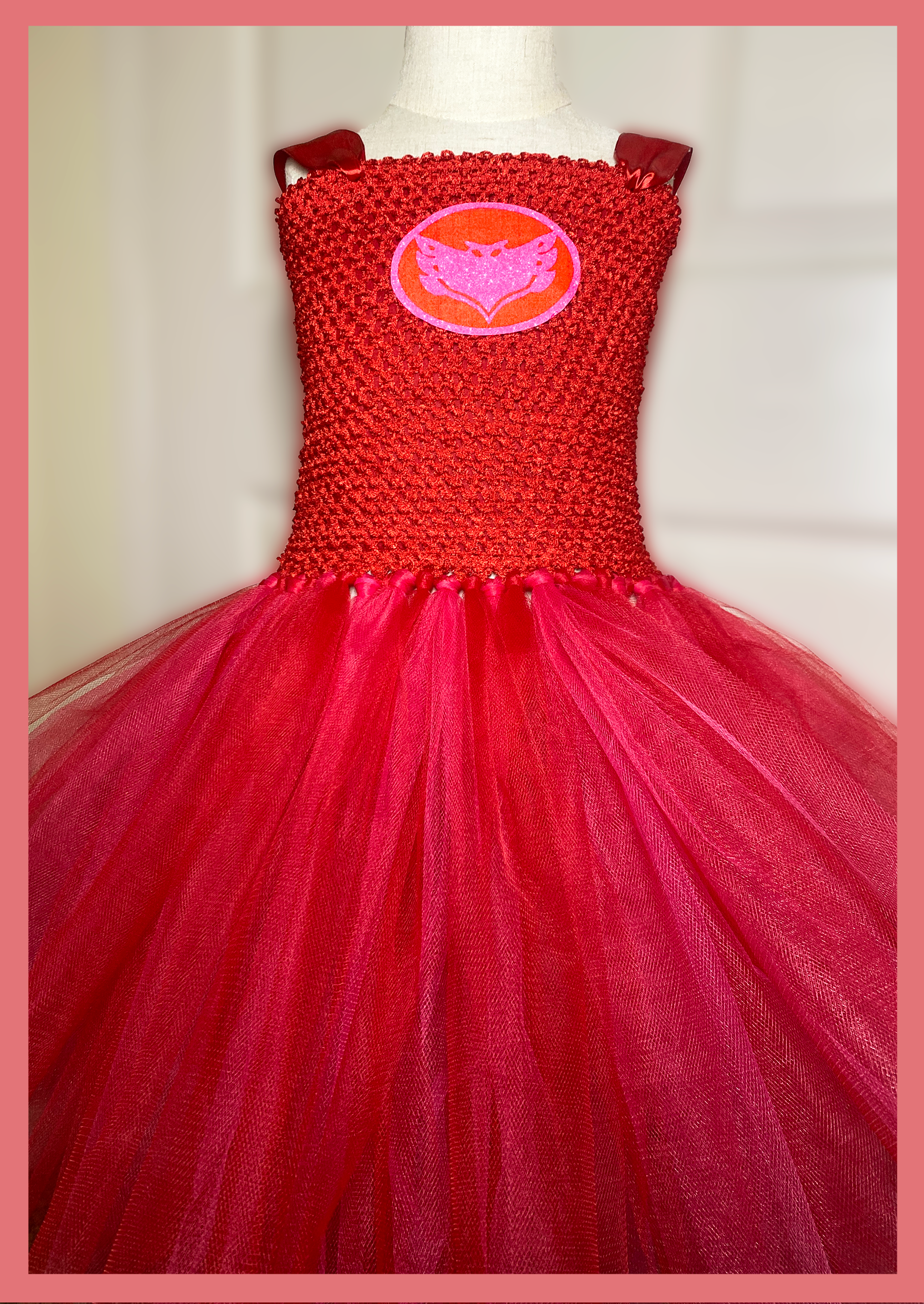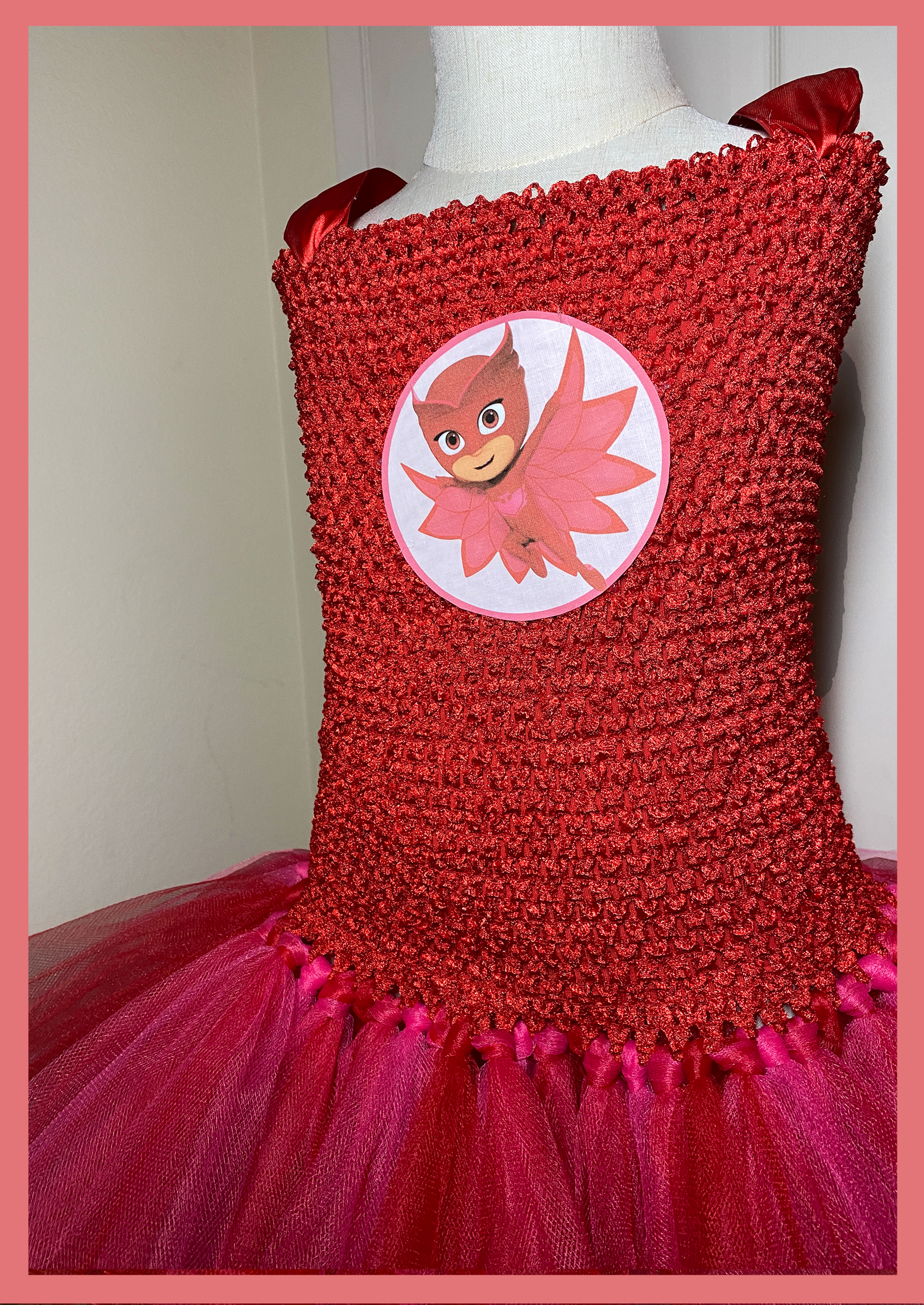 PJ Masks Owlette Halloween Costume Red Tutu Party Dress with Cotton Lined Top