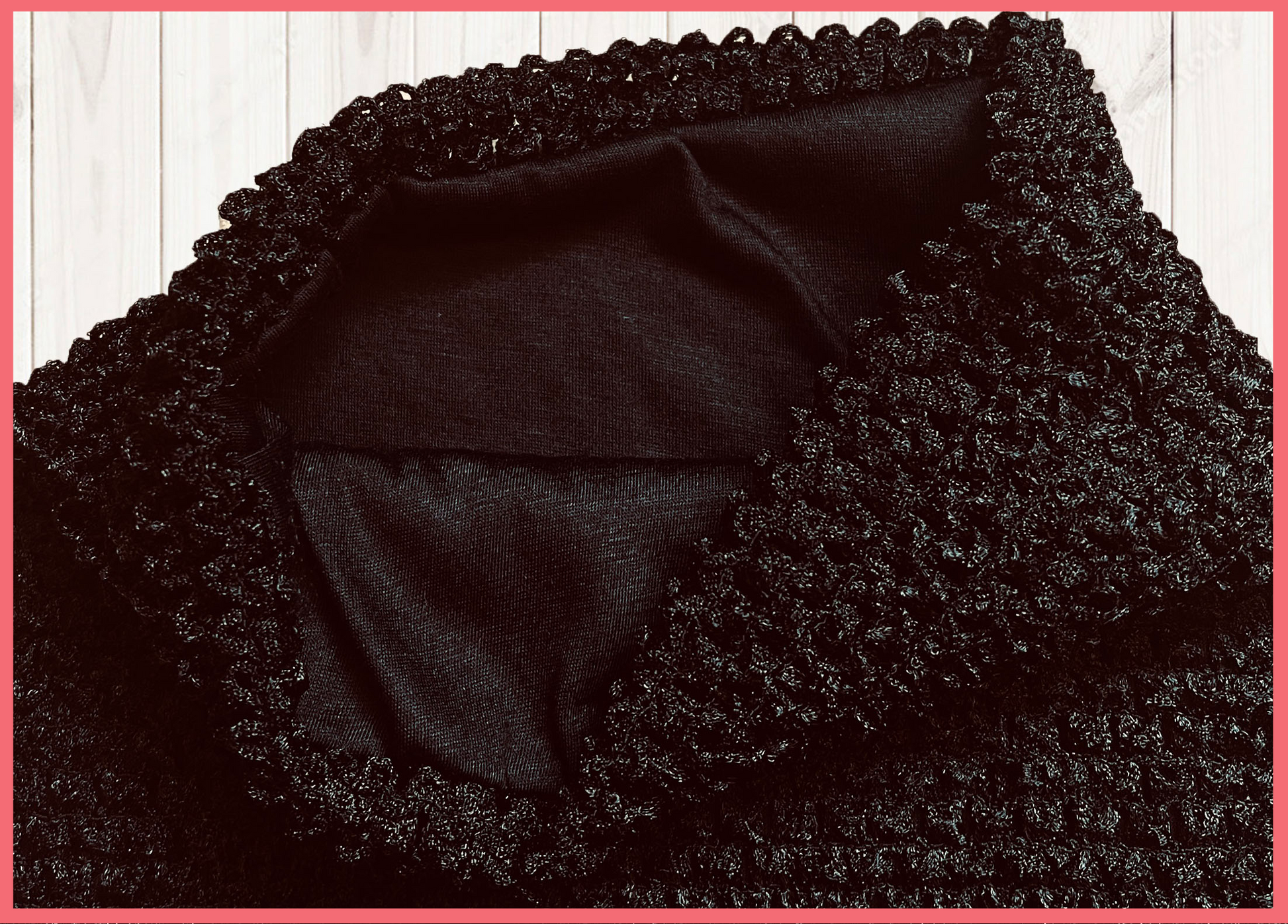 - Black top lined with a soft cotton and has a slight stretch, ready to fit many sizes