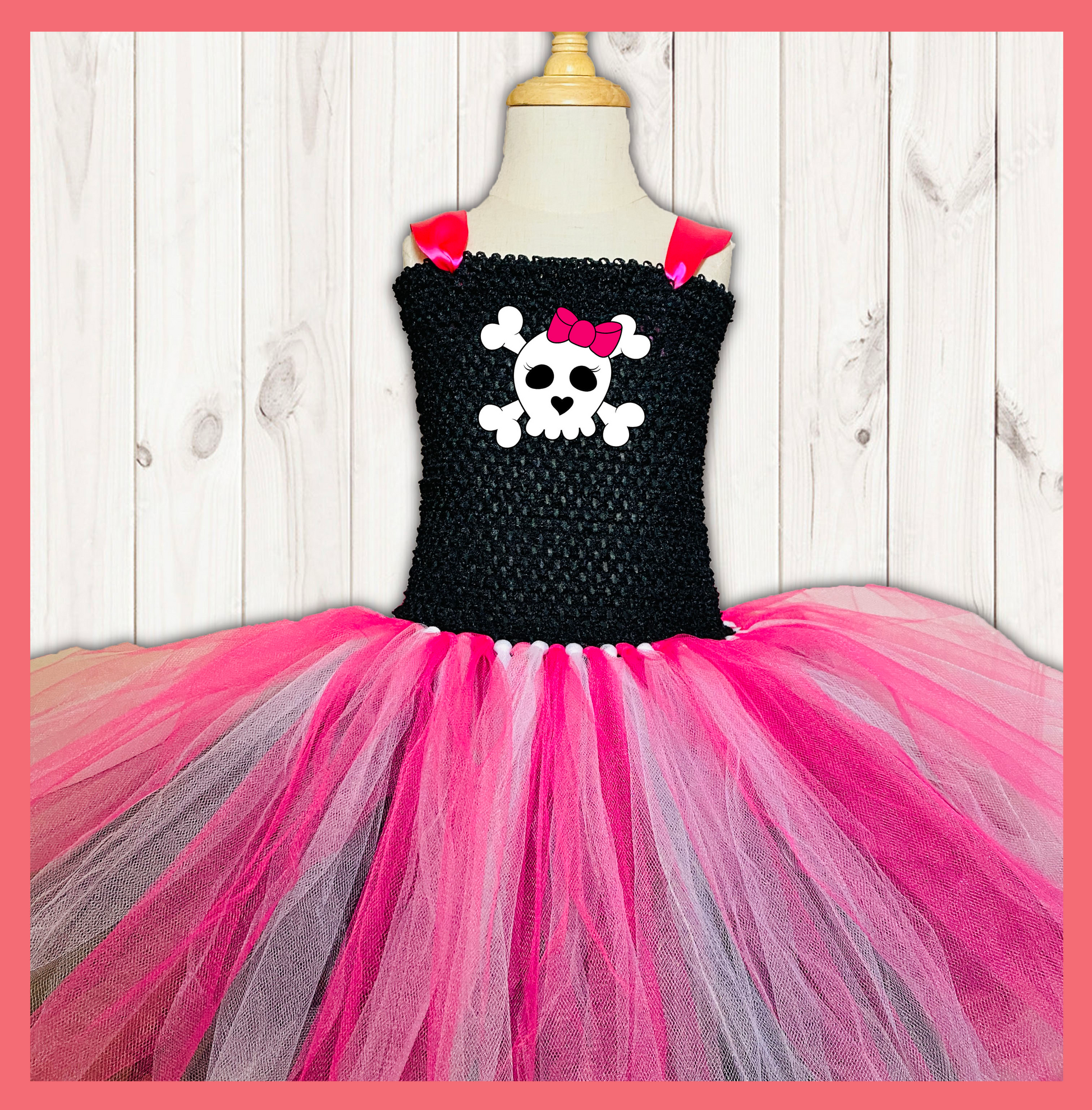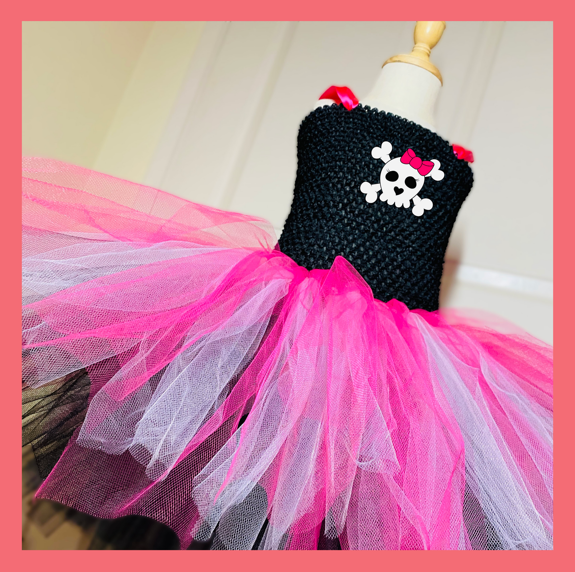 Skull & Cross Bones with a Bow Tutu Party Dress with a Cotton Lined Black Top