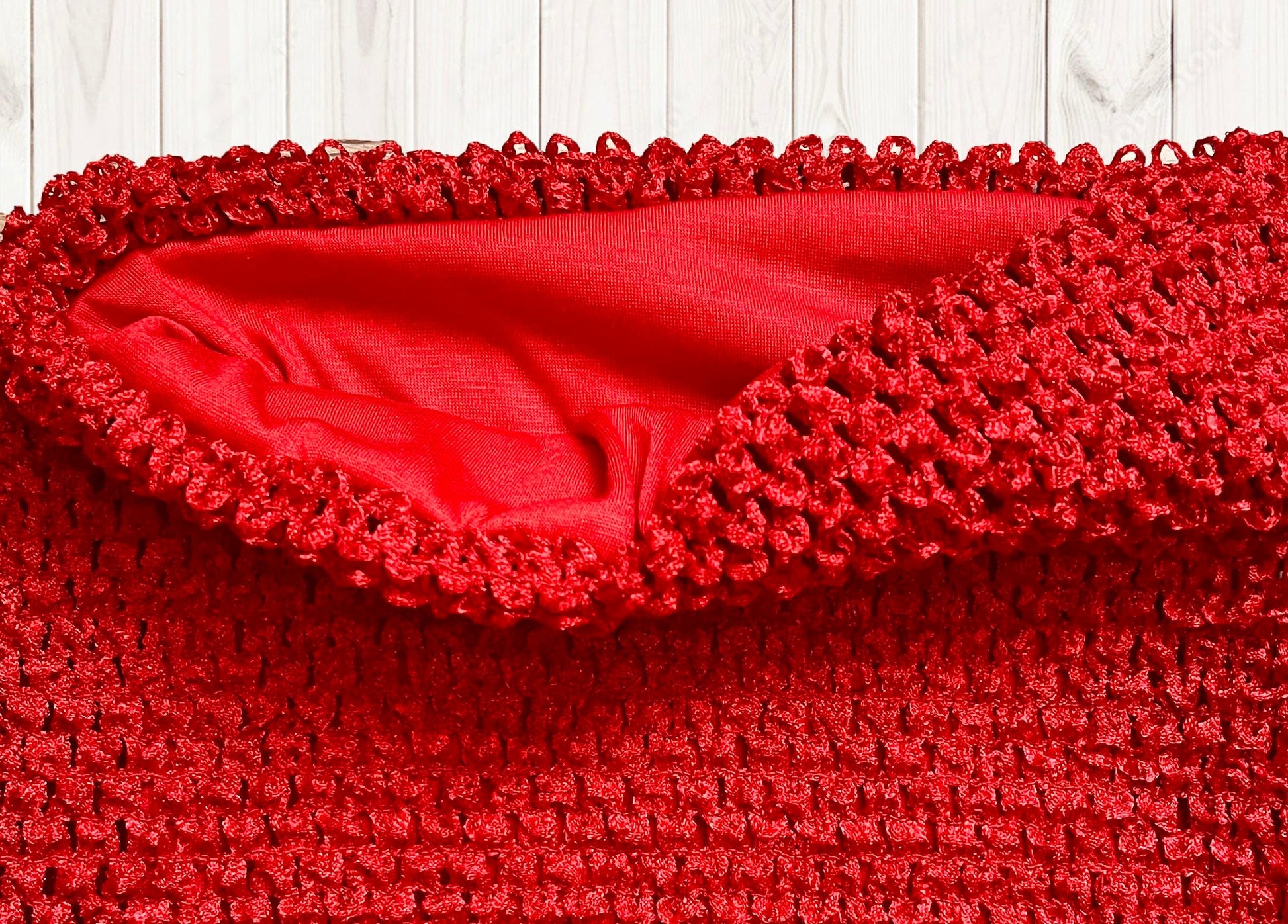 - Red top lined with a soft cotton and has a slight stretch, ready to fit many sizes